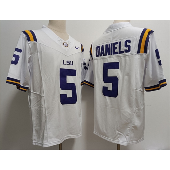 Men's LSU Tigers #5 Jayden Daniels White Stitched Jersey