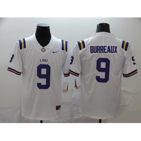 >Men's LSU Tigers #9 Burreaux White College Football Jersey
