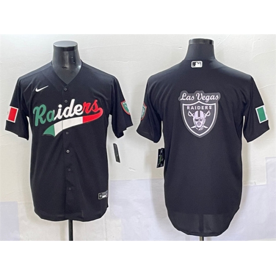 Men's Las Vegas Raiders Team Big Logo Black Mexico Cool Base Stitched Baseball Jersey