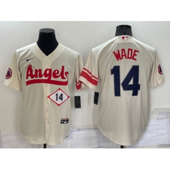 >Men's Los Angeles Angels #14 Tyler Wade Number Cream 2022 City Connect Cool Base Stitched Jersey