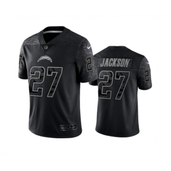>Men's Los Angeles Chargers #27 J.C. Jackson Black Reflective Limited Stitched Football Jersey
