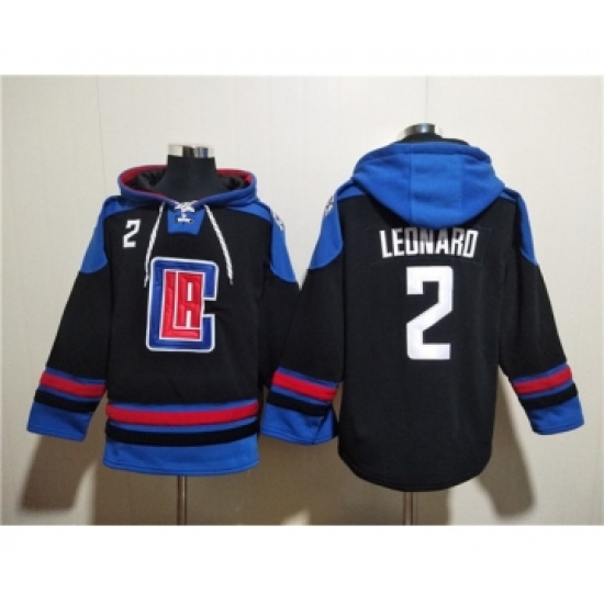 >Men's Los Angeles Clippers #2 Kawhi Leonard Black Blue Lace-Up Pullover Hoodie