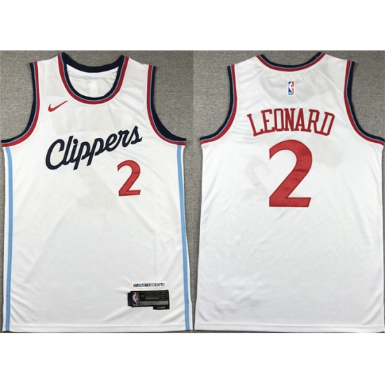 Men's Los Angeles Clippers #2 Kawhi Leonard White Stitched Jersey