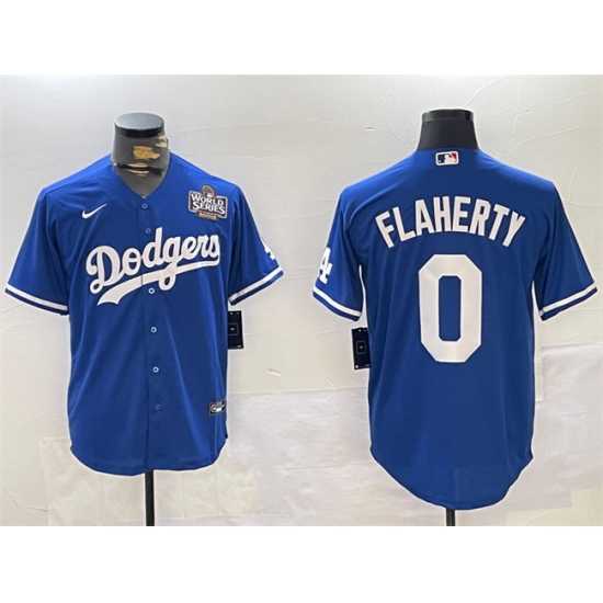 Men's Los Angeles Dodgers #0 Jack Flaherty Royal 2024 World Series Cool Base Stitched Baseball Jersey