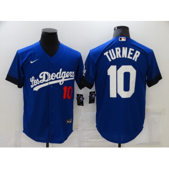 Men's Los Angeles Dodgers #10 Justin Turner Blue Game City Player Jersey