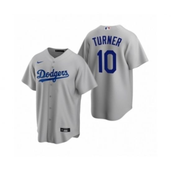 >Men's Los Angeles Dodgers #10 Justin Turner Nike Gray Replica Alternate Jersey