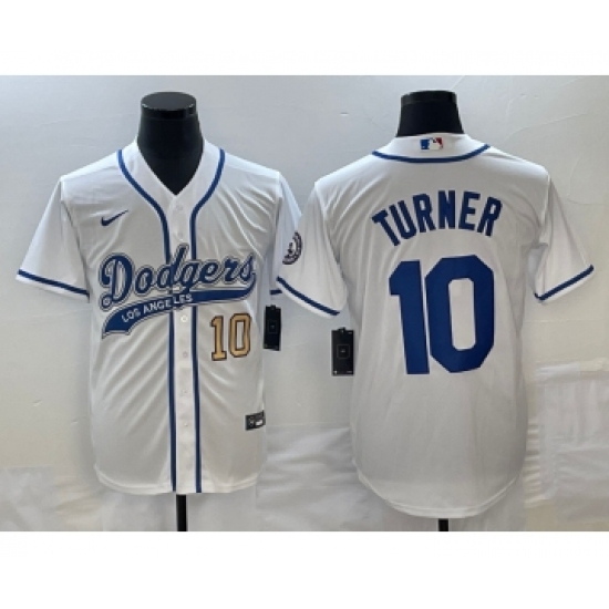 Men's Los Angeles Dodgers #10 Justin Turner Number White Cool Base Stitched Baseball Jersey