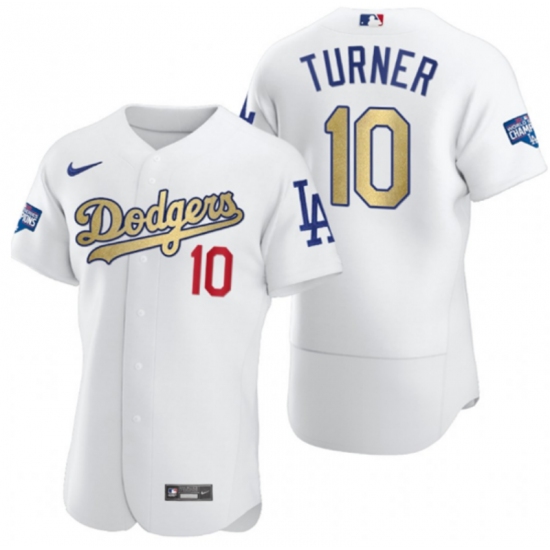 Men's Nike Los Angeles Dodgers #10 Justin Turner White Game Champions Jersey