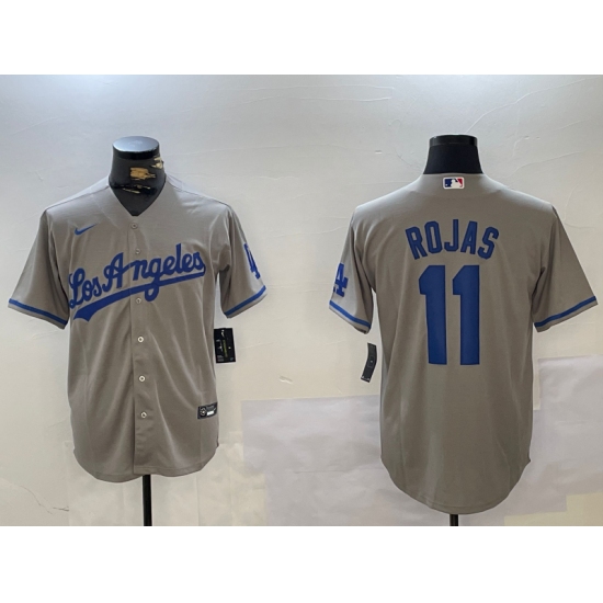Men's Los Angeles Dodgers #11 Miguel Rojas Grey With los Cool Base Stitched Jersey