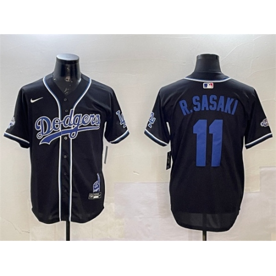 Men's Los Angeles Dodgers #11 Roki Sasaki Black 2024 World Series Champions Limited Stitched Baseball Jersey