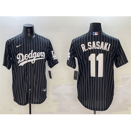 Men's Los Angeles Dodgers #11 Roki Sasaki Black Cool Base Stitched Baseball Jersey