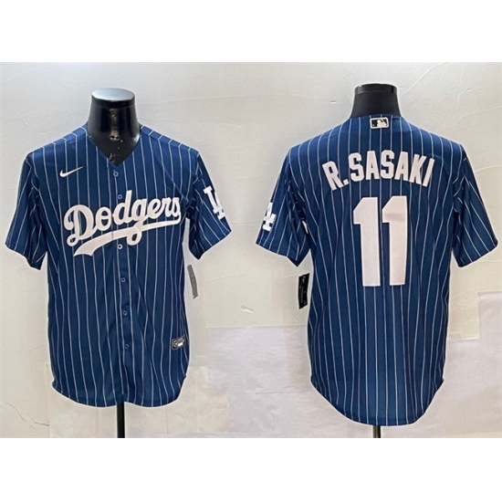 Men's Los Angeles Dodgers #11 Roki Sasaki Navy Cool Base Stitched Baseball Jersey