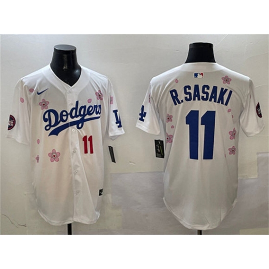 >Men's Los Angeles Dodgers #11 Roki Sasaki White 2025 Tokyo Series Limited Stitched Baseball Jersey