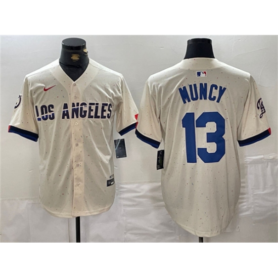 Men's Los Angeles Dodgers #13 Max Muncy Cream Stitched Baseball Jersey