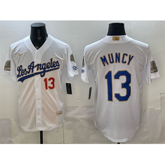 Men's Los Angeles Dodgers #13 Max Muncy White Cool Base Stitched Baseball Jersey