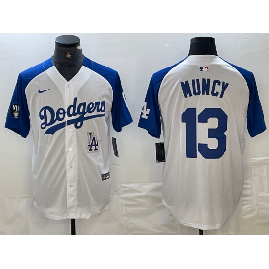Men's Los Angeles Dodgers #13 Max Muncy White Blue Fashion Stitched Cool Base Limited Jersey