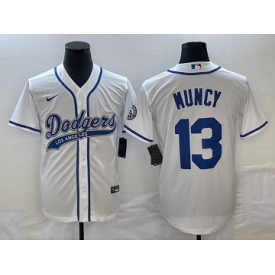 Men's Los Angeles Dodgers #13 Max Muncy White Cool Base Stitched Baseball Jersey1