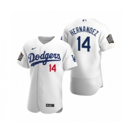 >Men's Los Angeles Dodgers #14 Enrique Hernandez Nike White 2020 World Series Authentic Jersey