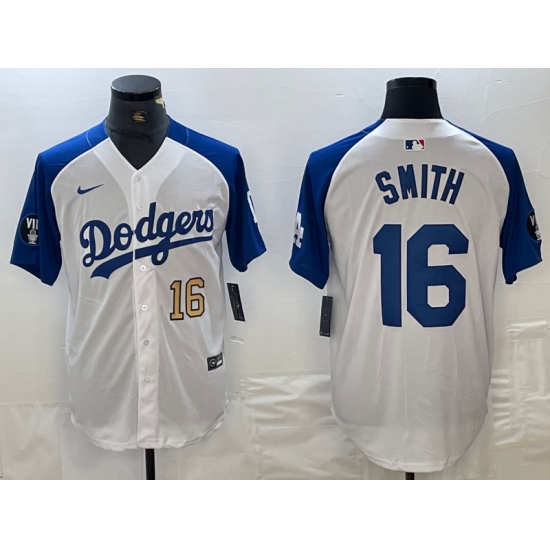 Men's Los Angeles Dodgers #16 Will Smith White Blue Fashion Stitched Cool Base Limited Jersey