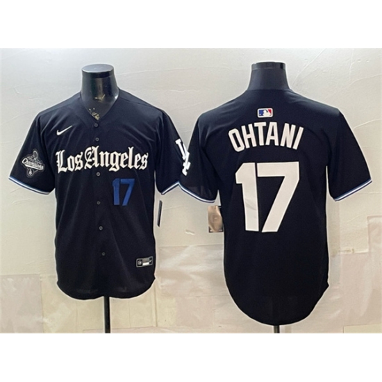 >Men's Los Angeles Dodgers #17 Shohei Ohtani Black 2025 World Series Champions 'Gothic Edition' Vapor Premier Limited Stitched Baseball Jersey