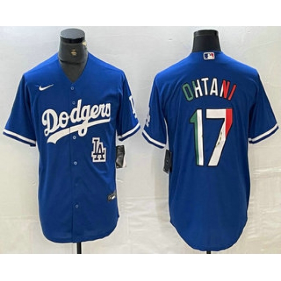 Men's Los Angeles Dodgers #17 Shohei Ohtani Mexico Blue Cool Base Stitched Jersey