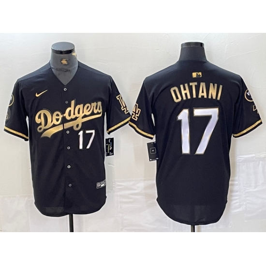 >Men's Los Angeles Dodgers #17 Shohei Ohtani Number Black Gold Fashion Stitched Cool Base Limited Jersey