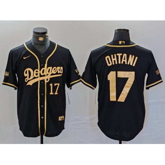Men's Los Angeles Dodgers #17 Shohei Ohtani Number Black Gold World Series Champions Cool Base Stitched Jersey