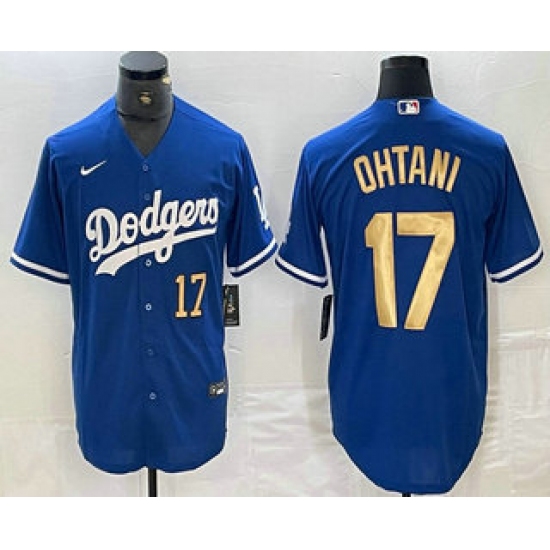 Men's Los Angeles Dodgers #17 Shohei Ohtani Number Blue Gold Stitched Cool Base Nike Jersey