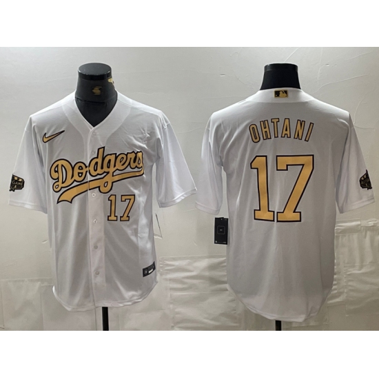 >Men's Los Angeles Dodgers #17 Shohei Ohtani Number White 2022 All Star Stitched Cool Base Nike Jerseys