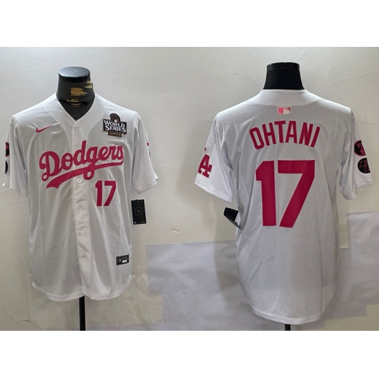 Men's Los Angeles Dodgers #17 Shohei Ohtani Number White Pink 2024 World Series Limited Cool Base Stitched Jersey