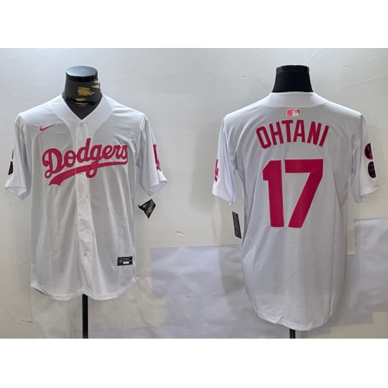 Men's Los Angeles Dodgers #17 Shohei Ohtani Number White Pink Limited Cool Base Stitched Jersey
