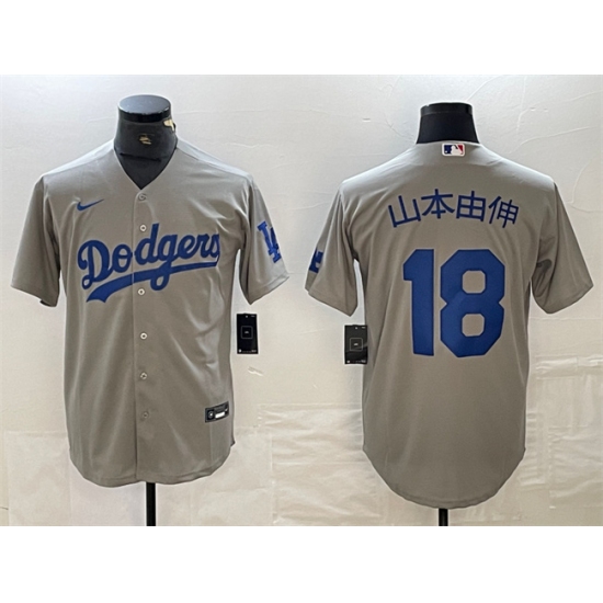 Men's Los Angeles Dodgers #18 山本由伸 Gray Cool Base With Patch Stitched Baseball Jersey