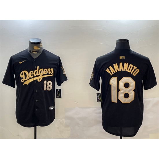 >Men's Los Angeles Dodgers #18 Yoshinobu Yamamoto Black Gold Limited Stitched Baseball Jersey