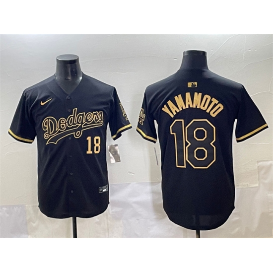Men's Los Angeles Dodgers #18 Yoshinobu Yamamoto Black Gold Limited Stitched Jersey