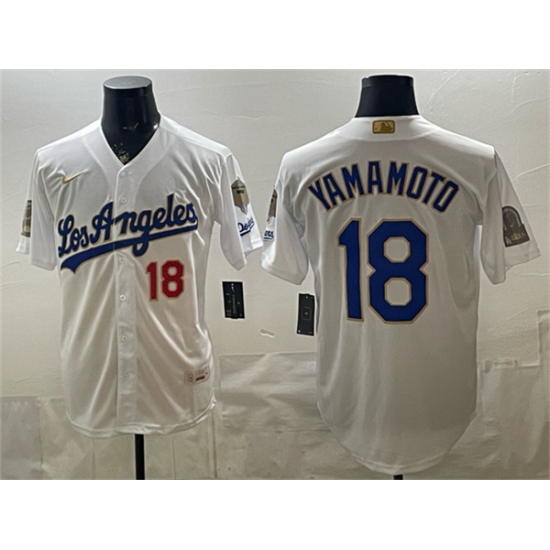Men's Los Angeles Dodgers #18 Yoshinobu Yamamoto White 2026 Gold Collection 9x & B2B Champs Stitched Baseball Jersey