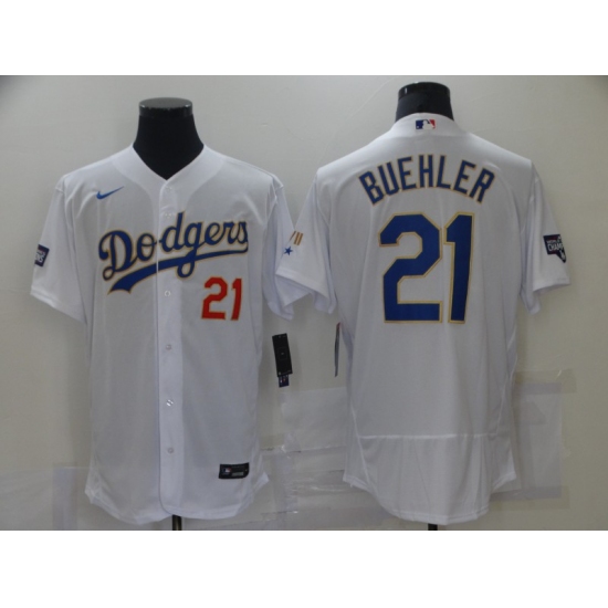 Men's Los Angeles Dodgers #21 Walker Buehl White Nike World Series Champions Authentic Jersey