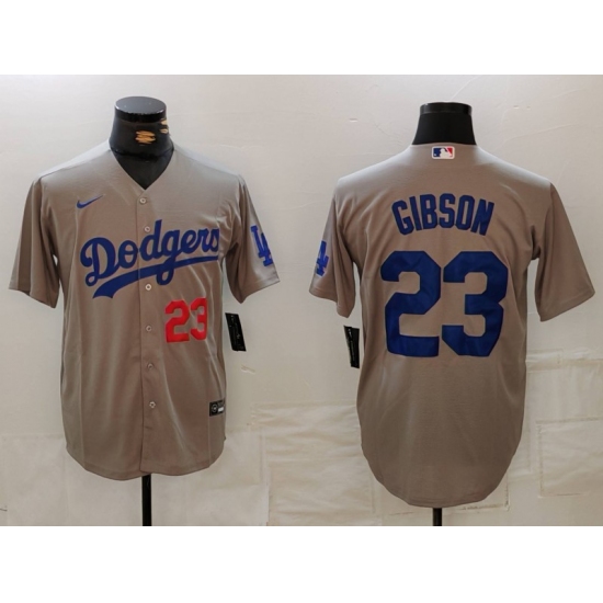 Men's Los Angeles Dodgers #23 Kirk Gibson Number Grey Cool Base Stitched Jersey