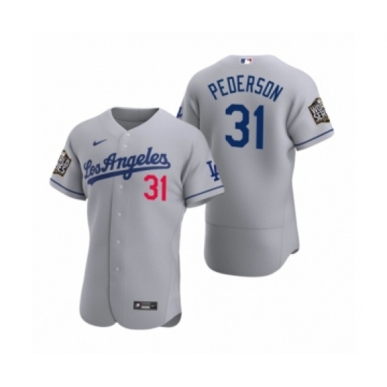 Men's Los Angeles Dodgers #31 Joc Pederson Nike Gray 2020 World Series Authentic Road Jersey