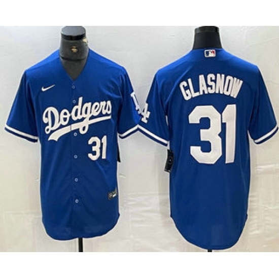 >Men's Los Angeles Dodgers #31 Tyler Glasnow Number Blue Stitched Cool Base Nike Jerseys
