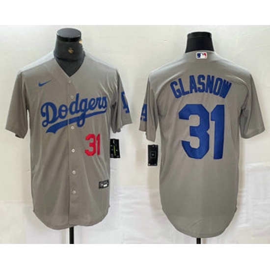 >Men's Los Angeles Dodgers #31 Tyler Glasnow Number Grey Stitched Cool Base Nike Jersey