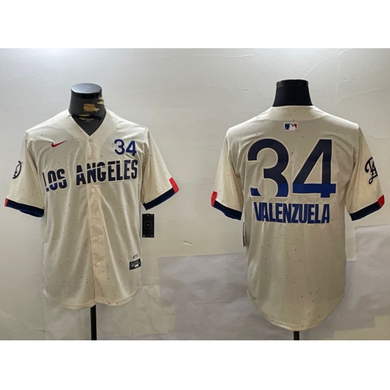 Men's Los Angeles Dodgers #34 Fernando Valenzuela Cream 2025 Tokyo Series Limited Stitched Baseball Jersey