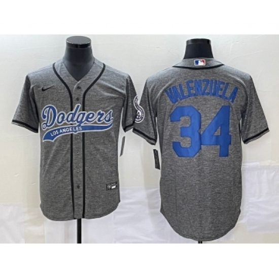 Men's Los Angeles Dodgers #34 Fernando Valenzuela Grey Gridiron Cool Base Stitched Baseball Jersey