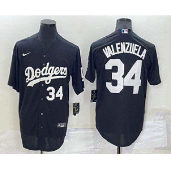 Men's Los Angeles Dodgers #34 Fernando Valenzuela Number Black Cool Base Stitched Baseball Jersey