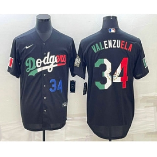 Men's Los Angeles Dodgers #34 Fernando Valenzuela Number Mexico Black Cool Base Stitched Baseball Jerseys