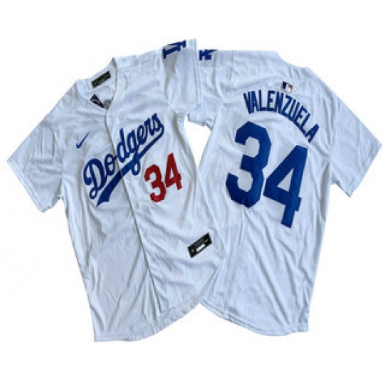 Men's Nike Los Angeles Dodgers #34 Fernando Valenzuela White-Green 2020 World Series Jersey