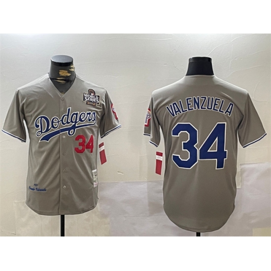 >Men's Los Angeles Dodgers #34 Toro Valenzuela Grey 2024 World Series 1981 Cooperstown Stitched Baseball Jersey