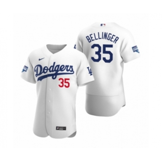 Men's Los Angeles Dodgers #35 Cody Bellinger White 2020 World Series Champions Authentic Jersey