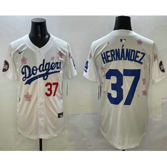 >Men's Los Angeles Dodgers #37 Teoscar Hernandez White 2025 Tokyo Series Limited Jersey