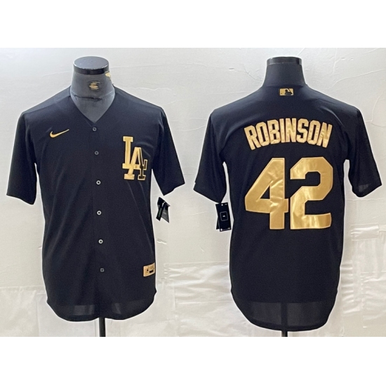 >Men's Los Angeles Dodgers #42 Jackie Robinson Black Gold Cool Base Stitched Jersey