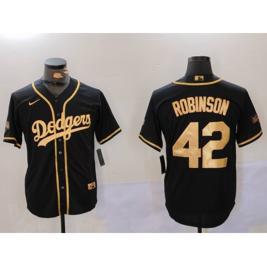 Men's Los Angeles Dodgers #42 Jackie Robinson Black Gold World Series Champions Cool Base Stitched Jersey